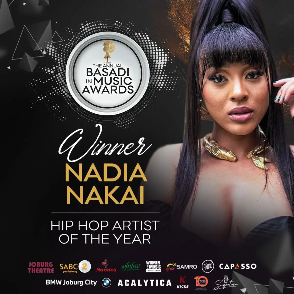 DJ of the Year award went to Lady Amar, while Nadia Nakai (ft Lucasraps) won Hip Hop Artist of the Year.